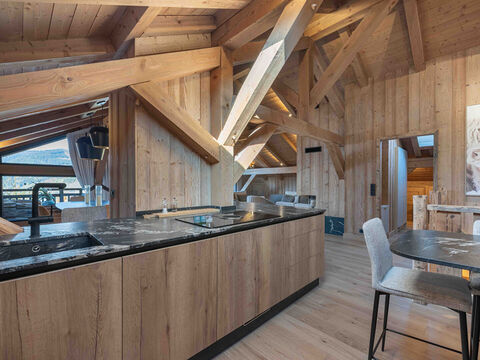 Located close to Mont d'Arbois, this exceptional duplex flat - half-farmhouse offers a surface area of 190.39 sqm. Carrez and 230 sq.m in total. Made using high-quality materials, it features a meticulous renovation, combining comfort and refinement. The property comprises 5 en suite bedrooms, including a dormitory, each with its own intimate and spacious space, ideal for welcoming family and friends. The living area on the top floor comprises a spacious living room, a reception room with fireplace, an open-plan fitted kitchen and a utility room offering breathtaking panoramic views of the surrounding mountains, allowing you to enjoy a unique living environment. The flat enjoys a privileged location overlooking Megeve, which adds to its exceptional character. This rare product is waiting to be discovered, an exceptional property combining luxury, comfort and proximity to the slopes of the Domaine Evasion Mont-Blanc or the golf course in summer.