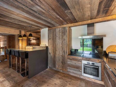 Magnificent character apartment with a 147.46 sq.m loi carrez surface area (165.31 sq.m) total surface area), located in a renovated former farmhouse. A unique space combining charm and comfort, with its own entrance and private garage, ideal for your peace and quiet. Located in a quiet, natural area between the village of Megeve and Mont d'Arbois, this apartment offers an exceptional living environment. Spacious and duplex, with four en suite bedrooms and a living room opening onto a large private garden, it's perfect for mountain lovers looking for an authentic place to live.
