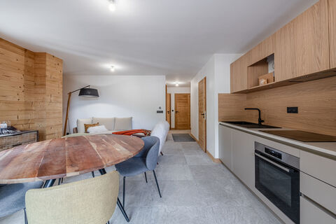 New project of 3 authentic chalets in Morzine! in the heart of Morzine, we invite you to discover this new program of three chalets designed in an authentic mountain spirit. The materials used are noble, such as stone and wood, and will give you access to spacious, bright and cosy interiors. The BEAUREGARD hotel will be converted into a residence (A), with apartments ranging from T2 to T5. The second (B) will be a 205m2 private chalet in a refined, traditional architectural style. Finally, the third chalet (C) will comprise just 3 apartments: a T2, a T3 Cabine Duplex and a T3 Triplex. Apartment A304 in the main chalet, formerly the BEAUREGARD hotel, has a surface area of 61,5 m2, and comprises 2 double bedroom with dressing room, 2 bathroom and separate toilet. Both bedrooms have a balcony acces. The fully-equipped kitchen opens onto the living room, offering direct access to an second balcony, for maximum sunshine. A storeroom complete this apartment's features.