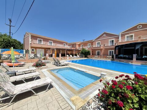 Located in the lively coastal area of Sidari, this well kept hospitality property spans a generous 3,000m2 plot with 1,300m2 of built space. Originally constructed in 2003 and updated in 2013, it includes four separate buildings designed for efficiency and guest comfort. The complex houses a total of 29 guest rooms, divided into three size categories, 8 rooms at 48m2, 10 rooms at 32m2, and 11 rooms at 26m2, making it ideal for accommodating both couples and families.