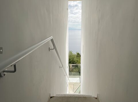 This property offers more than just indoor luxury: a short walk down the stone stairs leads you to a beautiful beach. The apartment also includes a laundry room and access to a large shared rooftop terrace, ideal for entertaining or enjoying the sunset.