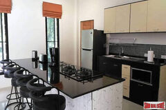 This private pool villa was completed earlier in 2019 and was built to the highest standards using only seasoned timber for the hand made doors and skirtings and all door frames have architrave surrounds. The kitchen is top quality, European style, with a breakfast bar leading to the living area. All surfaces in the kitchen and in the bathrooms have top quality black granite surfaces. Off the covered garage there are doors to a storage room and pool pump / filter room.