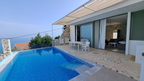The beautiful stone garden opens up to the amazing sea and mountain views with a private pool sharing the same view.