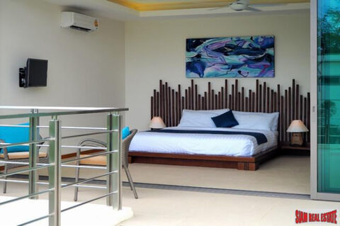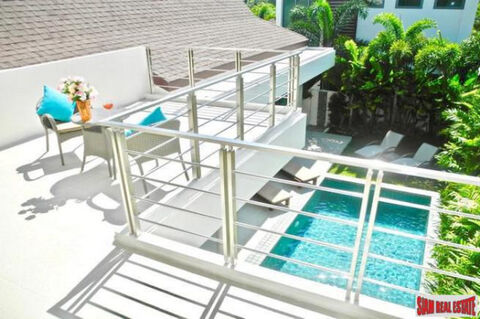 A two story modern pool villa is for sale in a secure estate of 36 villas, only five minutes from Rawai Pier and 10 minutes to Nai Harn Beach. This 4 bedroom house has a unique rooftop terrace that overlooks the private swimming pool and is a perfect spot to entertain or relax.