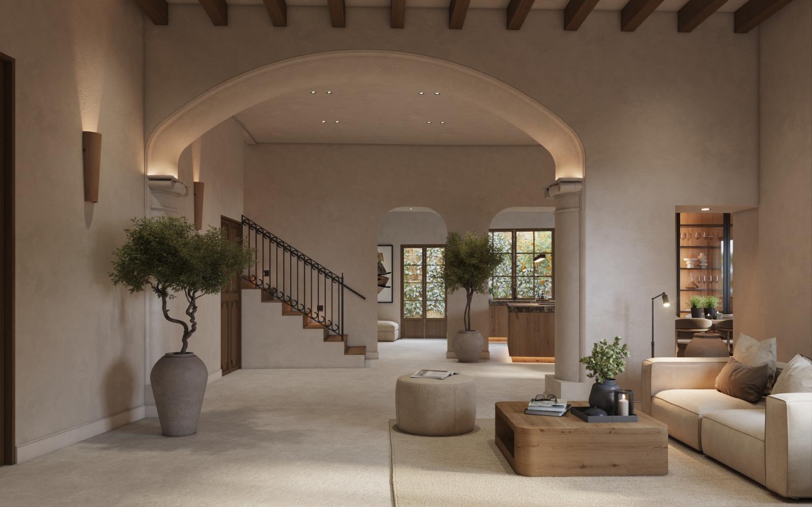 This high-quality renovated townhouse is located in a quiet street in the heart of Felanitx - just a few steps away from the historic church. With over 300 m2 of living space, a Mediterranean patio and a private pool (3 × 6 m), this property combines authentic charm with modern living comfort.