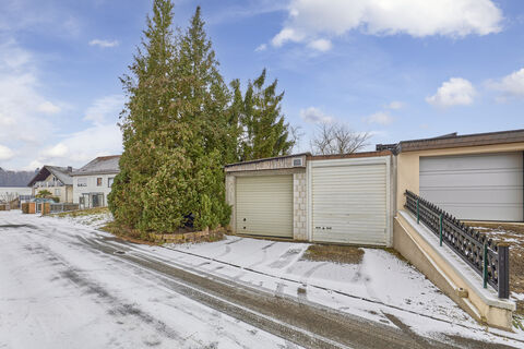 Bereits auf dem Grundstuck vorhanden sind zwei massiv gebaute Doppelgaragen, die vielseitig genutzt werden konnen. Eine der Garagen ist aktuell fur 50 € monatlich vermietet; das Mietverhaltnis kann unter Einhaltung der gesetzlichen Kundigungsfrist von drei Monaten beendet werden.