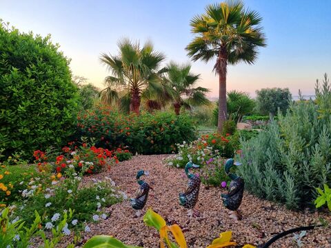Die Hauptfinca mit rund 230 m2 Wohnflache wurde im authentisch-mediterranen Stil erbaut und von internationalen Handwerkern mit ausgesuchten Naturmaterialien vollendet: Osterreichische Holzbalken, eine imposante Eingangstur aus Afrika, eine markante Natursteinwand und ein einzigartiger Holzofen mit Dreizugtechnik schaffen unverwechselbaren Charakter.