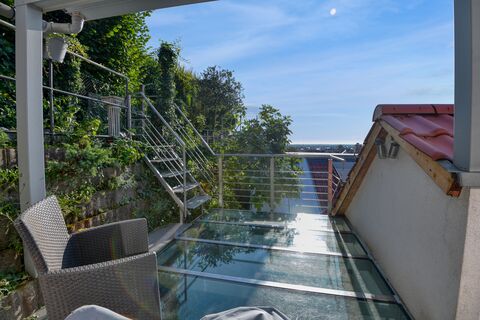 Die grosse 5 ZKB welche sich vom 1.OG bis zum 3.OG erstreckt bietet ein freundliches Wohnklima, worin der Kuchen- und Essbereich offen gestaltet wurde sowie ein Kaminofen (Marke Hark) verbaut wurde. Der Ofen ist auf dem aktuellen Stand der Technik und darf auch weiterhin betrieben werden. Über den Treppenaufgang gelangen Sie zum Wohnzimmer bzw. Esszimmer im Dachgeschoss mit Zugang zur Terrasse und Dachgarten mit Blick uber Heidelberg. Knauf-Latent Warmespeicherplatten sorgen im Wohnzimmer zusatzlich spezielle im Sommer fur ein angenehmes Klima.