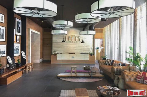 A brand new one bedroom fully furnished and ready to move into condo is for sale at The Lofts Ekkamai. Situated on the 8th floor this unit has an open living plan with living room, dining area for two and a western kitchen that has a stovetop, microwave, refrigerator and washing machine. The bedroom has a ensuite bathroom and there is a balcony off the living room.
