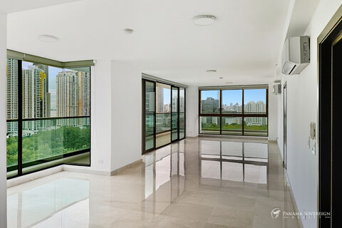 This 276 m2 Model A residence at PH Park Lane delivers one of Costa del Este's most sought-after floor plans, offering wide open social areas, floor-to-ceiling windows, and panoramic views of the city skyline and Parque Omar greenbelt. The layout is designed for comfortable day-to-day living, with well-defined spaces and a smooth connection to a large balcony.