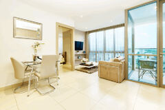 There is a big bed in the bedroom, wardrobe and an ensuite bathroom. The apartment has nice wood flooring throughout and is fully furnished and air conditioned..