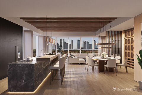 Celeste is a high-rise residential tower situated within the prestigious Santa Maria complex in Panama City. This pre-construction offering combines modern elegance with natural balance, offering an exceptional living experience surrounded by lush landscapes and a world-class golf course designed by Nicklaus Design. Each unit in Celeste boasts expansive layouts, ranging from 190 to 249 m2, with three bedrooms, 3.5 bathrooms, and spacious balconies that frame breathtaking views of the Santa Maria Golf Club and the vibrant Costa del Este area. Interiors feature high-end finishes, including Italian kitchens with marble or granite countertops and modern fixtures from brands like Kohler.