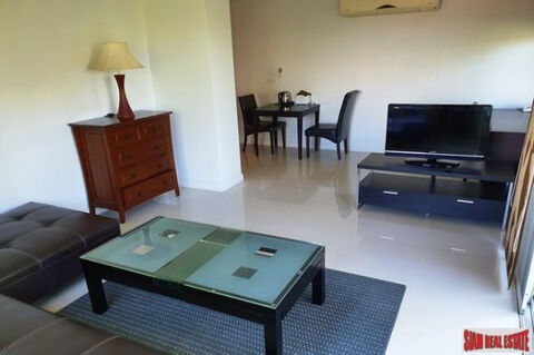 These one bedroom, one bath condos have been spaciously designed with quality fittings and comes with a fully equipped kitchen. The units feature private balconies with outdoor seating. These large units are decorated with Thai-style prints and modern furnishings. Comfortable lounge areas have a sofa set and flat-screen Satellite TV.