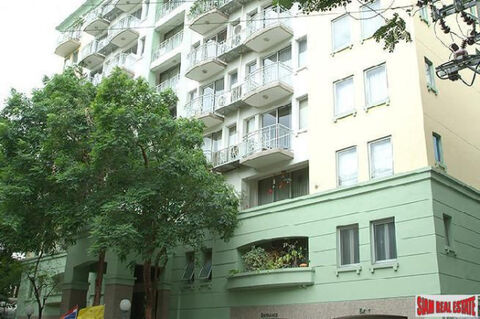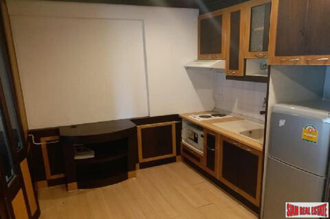 A studio apartment is for sale in the Rain Tree Condo. The apartment is 29 sqm with one bath. The unit has built-in furniture, wardrobes and storage area and has a terrace on the 7th floor. The Bathroom includes a bathtub and shower.