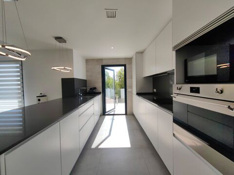 The villa has central air conditioning hot/cold. Fully equipped kitchen, fitted wardrobes, large terrace, barbecue area, parking space for 4 cars. Automated electric blinds and connected to the latest generation alarm system. Anti-intrusion glass sales.