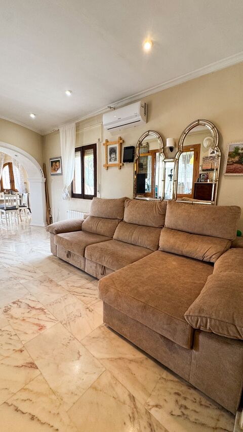 A fantastic opportunity: a cosy house located in a quiet and private area of Moraira! A perfect choice for a comfortable family life or for a relaxing holiday by the sea. The spacious plot offers a garden, swimming pool and everything you need to live all year round.Layout and features:✔ Independent kitchen✔ Spacious living-dining room✔ Office✔ Air conditioning✔ Sauna✔ BBQ area✔ Garden and pool✔ Garage for 3 cars✔ Solar panels✔ Jacuzzi✔ Private, quiet and safe area