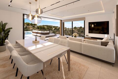 In a quiet residential area of Calpe, perfectly connected to the town center and only 4 minutes by car from all amenities, stands this magnificent villa of modern and elegant design, with an approved license and currently under construction.