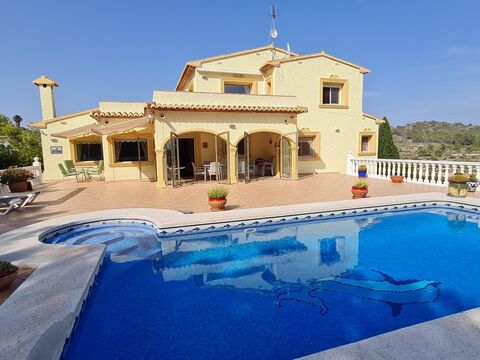 We are very honoured to offer this very well constructed and presented 4 bed - 4 bathroom villa, built new in 1999 for its present owner and located on a plot of 1,268 sq mt plot with panoramic views down to the coast and surrounding countryside. Comprising of 2 separate independent floors with a totally self contained 2 bed apartment on the upper floor with lounge, kitchen, 2 bathrooms and large open terrace.