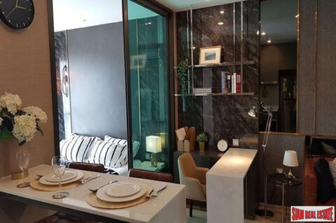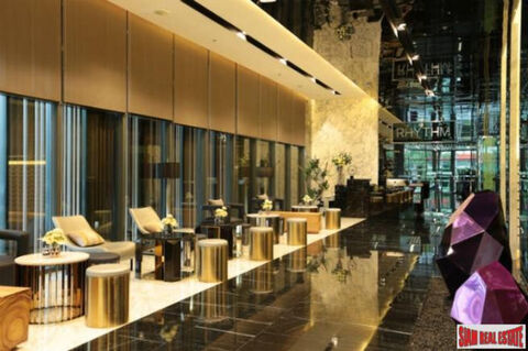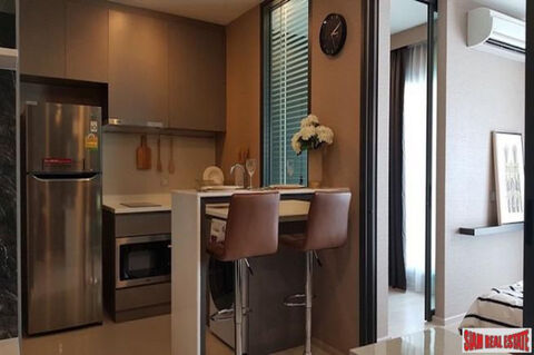 A cozy modernly decorated and fully equipped one bedroom condo is for sale in the Rhythm Rangnam. This is a new luxury building with excellent facilities including a rooftop sky gym and swimming pool. The apartment is situated on the 24th floor with green views of Santiphab Park.