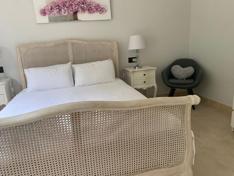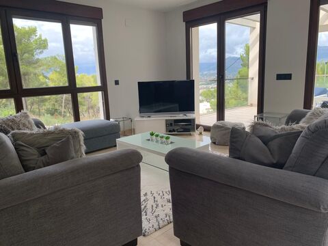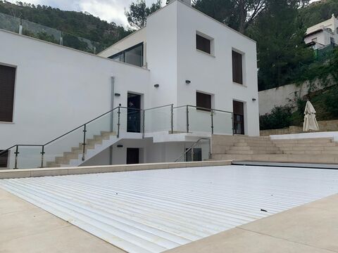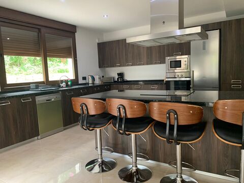 Villa moderna amueblada de 5 dormitorios y 4 banos, salon comedor con chimenea, cocina equipada, terraza, piscina privada en un hermoso jardin privado con zona barbacoa
