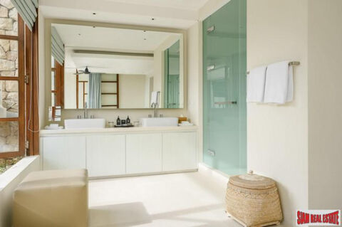 This Villa occupies one of the best positions on the estate with a fabulous elevated ocean view. It has now been remodeled and refurbished to the highest standard. The villa has four large en-suite bedrooms that accommodates up to 8 adults and the flexibility of an extra childa€™s bedroom/playroom or study room with its own powder room/shower room. All bedrooms are equipped with hairdryers in room safes with 1 extra bed & 1 crib available per villa. It has an outdoor show kitchen with a bar, an adjoining dining area with spectacular views and with the added benefit of a fully equipped and air conditioned internal kitchen. There is a spacious outside living area overlooking 15 meter infinity pool and the ocean. It has an air conditioned AV/TV room adjacent to the outside living area but also a fully equipped air conditioned gym. Beautiful internal and external landscaping and an infinity water feature. Parking for 2 cars with a discrete laundry area, a separate storeroom, full backup generators and uniformed security.