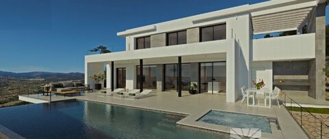 The access to the living area is on the top floor, with a hall, that takes the part of main distributor, and three bedrooms, two of which share a bathroom and spacious wardrobes, and one en-suite bedroom, all of them with access to a terrace area. On the lower floor, we will find the fourth bedroom of this villa, with an en-suite bathroom, a walk-in-closet and access to a terrace. The spectacular day area will not disappoint you. Made up of a kitchen with a central island where the cooking area sits and a breakfast bar, a spacious dining room and a living room. All of these connected to the exterior, with a big porch to be able to enjoy the fresh air.A stylish terrace encourages even more the idea of 'living outside' with several leisure areas next to the endless pool, the Jacuzzi and a barbecue area with an exterior dining area and a courtesy bathroom to enjoy the wonderful days of sun of which the Costa Blanca is known for.