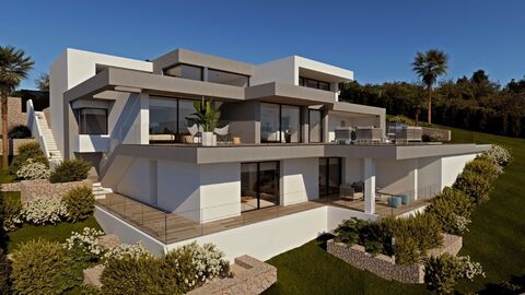 This villa is an icon of the Jazmines residential, XXI century design fully integrated into the exclusive environment of the Cumbre del Sol Residential Resort, built on a plot of 1.168m2, with a magnificent southwest orientation, which allows us to enjoy stunning sunsets.