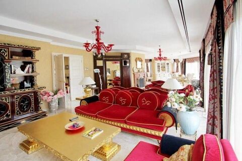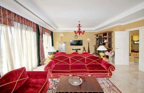 Furnished villa with 5 bedrooms, 1 dressing room, 4 bathrooms, living room is very large with kitchenette, A/C throughout the villa, a large Spa area of 100 m2 with sauna, jacuzzi, Turkish bath and shower, a nice garden with trees and palm trees with private heated pool, barbecue area, outdoor terrace with lounge, underfloor heating and is protected by a high-end security system, electric blinds on each window, there is a guest cottage with its living room, bathroom and bedroom.