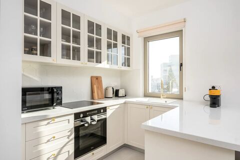 - Spacious modern living: Our 2-bedroom apartment in Larnaca offers a generous living space with premium amenities like a Marshall speaker system and Nespresso machine to enhance your comfort.