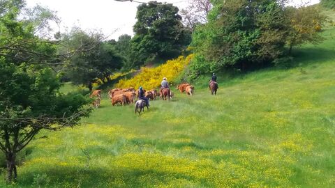 The property's 40 hectares are divided among pastures, arable land, and woods, fully enclosed by a high-efficiency electric fence. They host a certified Limousine cattle herd and horses used for rides and trekking, offering an authentic rural and agritourism experience.