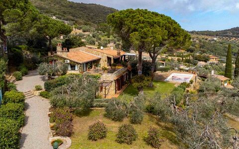 Set in a beautifully landscaped 5,000 sqm Mediterranean garden with olive trees, cypresses, and native shrubs, the property offers multiple outdoor areas for relaxation and entertaining. Terraces, shaded pergolas, outdoor dining areas, and an impressive infinity pool with breathtaking views create a luxurious yet natural ambiance. Large windows throughout the villa blend indoor and outdoor spaces, enhancing light and immersing the home in its stunning surroundings. Though peacefully secluded, the property is conveniently located near Porto Ercole and all amenities. This villa is an exceptional retreat for those seeking elegance, privacy, and contact with nature in one of Tuscany's most exclusive coastal destinations.