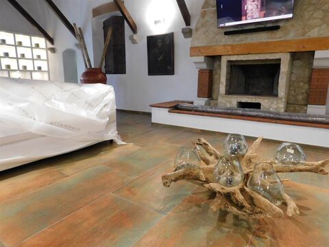 The estate is surrounded by approximately 1.5 hectares of land, partly designed as a landscaped park with 25 pine trees, 6 centuries-old oaks, and a small acacia grove. The inner courtyard elegantly connects the two main buildings. A large swimming pool enhances the outdoor relaxation area. The property is easily accessible via a paved road and automated driveway gate. Additional features include an electric vehicle charging station and ample parking areas.