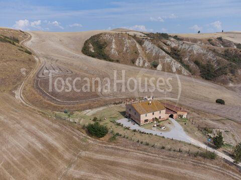Nestled in the picturesque countryside of Asciano, this charming farmhouse combines the allure of Tuscan rustic style with an enviable location, offering breathtaking views of rolling hills and an unmatched sense of tranquility. With a total area of 500 sqm, the property provides ample living space and a unique atmosphere.