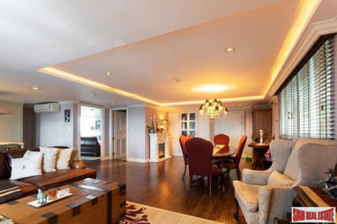 A unique one bedroom penthouse condo in Phayathai area is for sale with good quality furniture and high end wood flooring. The unit is very large with 98 sqm of living space and has a big open living plan with a living room and western kitchen. There is a large island-style work station with five breakfast bar stools in the kitchen. It also has nice white cabinets, a stovetop, oven, microwave, refrigerator and washing machine.