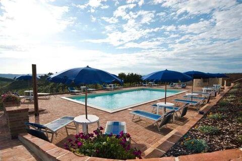 This beautifully renovated villa is for sale, set amidst landscaped gardens with a large swimming pool. Located near Volterra, the property offers a 360° panoramic view of the Tuscan countryside and is surrounded by 148 hectares of land, including a hunting reserve.