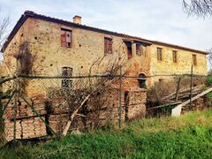 This charming property, located at the foot of an enchanting village just a few kilometers from the town of Trequanda, offers a unique opportunity in the heart of the Tuscan hills, between the Valdichiana and Val d'Orcia. The farmhouse for sale is characterized by a typical Tuscan rustic style, with a stone facade and brick ceilings with exposed beams, presenting a property that requires a complete renovation, offering the chance to create a one-of-a-kind, personalized residence.