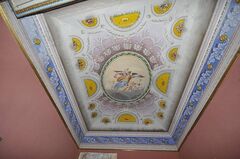 Exposed wooden beams and brick ceilings