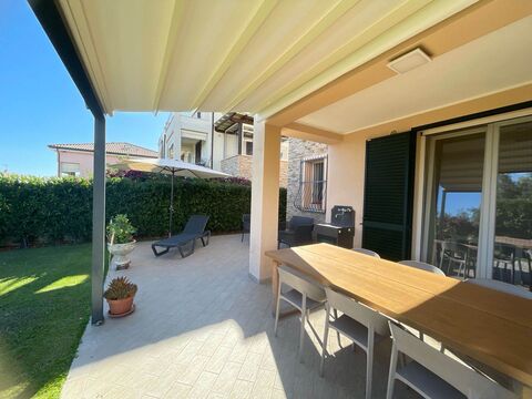 in San Vincenzo, in a slightly elevated area just 1 km from the sea and town center, this modern ground-floor apartment is part of a recent residential complex featuring a private condominium pool reserved for residents.