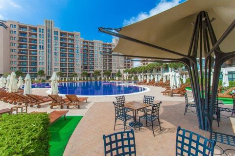 Big SEA VIEW studio apartment, 56 sq.m., in Barcelo Royal Beach (Sunny beach) We offer to your attention this modern studio apartment in complex Royal Beach in the center of Sunny beach. Royal Beach is located in the most modern and luxury holiday resort along the Bulgarian Black Sea coast - Sunny Beach. The beach strip is a combination of exotic nature and modern atmosphere which make it a magnetic place for relaxation and recreation. The resort offers various amusement spots - numerous restaurants, bustling night clubs, modern discos and luxury cafйs. All this makes Sunny Beach a very attractive place both for Bulgarian and foreign tourists. Here you can take pleasure in the exotic plants and the majestic dunes as the beach in the resort is holder of the prestigious Blue Flag award. The studio is situated on the 6th floor and has a total area of 56 sq. m. It comprises of: - open-plan kitchen with a living room; - Bedroom area; - a terrace with views towards the sea and pools. *The layout allows converting of the studio into 1 BED apartment. It is equipped with an air-conditioning system. The bathroom is fully equipped with faience tiles, shower cabin, sanitary utilities, accessories and lighting. Annual maintenance fee - 22 EUR/sq.m. The complex includes a five-star hotel, comprising 143 rooms, 6 buildings with 504 apartments, a children's playground and a garden with an area of over 9000 sq.m. Numerous entertainment options are a further guarantee for a perfect holiday: 6 theme restaurants and confectioneries, a piano bar and a lobby bar. The Royal Beach Barcelo Complex is remarkable for its picturesqueness and five-star luxury, which have made it the new paradise place of Sunny Beach Resort. The unique SPA centre in the complex is located on an area of nearly 2000 sq m and includes a huge indoor swimming pool, a Turkish bath and all kinds of massages, Kneipp walk, and a number of saunas, Ayurvedic rituals, Vichy shower and procedures in the so fashionable SPA capsules. The relaxation beds in the form of big palm leaves on which the guests of the centre can relax after the procedures and refresh themselves with a cocktail from the vitamin bar are unique in design and a favorite attraction for all visitors of the Royal Beach Spa. For business meetings and conferences, the Royal Beach Complex offers to its guests several conference rooms. The cosmopolitan atmosphere of the Royal Beach Barcelo Complex offers an exciting opportunity for recreation and shopping. In the garden one will find the 3 swimming pools with a total area of 1,700 sq.m. as their unique composition is part of the development's philosophy. All three pools: the standard flower-shaped pool, the children's pool and the VIP pool offer coolness and recreation. Both the children's pool and the VIP pool are heated and are great both for relaxation and games. In addition to the three outdoor pools the Royal Beach also offers the serenity of its indoor heated pool set in the very center of the building - far from the outside noise and at the same time close to the numerous places of entertainment the development offers. Royal Beach Mall, the retail centre of the Royal Beach Complex, located on the oldest retail street in Sunny Beach, is the greatest and the most modern mall along the Bulgarian Black Sea Coast. Here both owners and visitors have access to various and luxury stores. The mall accommodates over 140 stores, a number of cafes, a piano bar and 4 large theme restaurants. The merchandise mix is perfectly balanced and covers all possible needs of the customers, represented by international and leading Bulgarian brands such as: KFC, Adidas, Technomarket, Madoc Jeans, Lee Cooper, Pepe Jeans, Denyl, Rinascimento, Altinbas, 2 BE, Adam's Shoes, Diverse, Galdini, Sugarfree, Juliany, New Silhouette, Eurooptic, Franco Ferucci , Jimmy's, Coffee Republic.