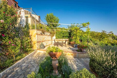 The annex of 30 sqm is spread over two floors, with vaulted ceilings and large windows, and consists of two storage rooms. The terraced garden surrounding the property is about 300 sqm and includes flower beds and an irrigation system. Here, an above-ground pool could also be installed, adding value and comfort to the property.