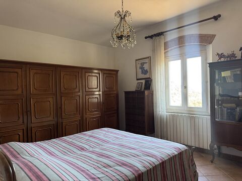 The farmhouse is set in a breathtaking landscape and features excellent outdoor facilities for enjoying the countryside: a wood-burning oven, a BBQ area, vehicle sheds, warehouses, and several outbuildings. The property is surrounded by a fenced garden of approximately 1,000 sqm, complemented by an additional 10,000 sqm of private land with 900 olive trees in full production. Convenient private parking spaces complete the estate. The peaceful atmosphere of the hamlet and the panoramic views make this farmhouse a true oasis of peace, while remaining strategically close to major transport links.