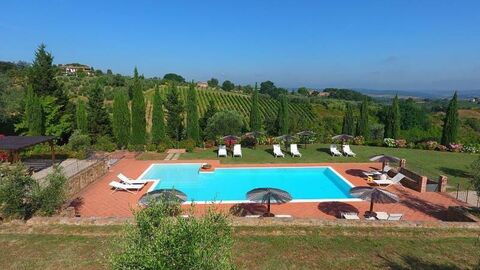 in the countryside of Montaione, just 500 meters from the historic center, a charming farmhouse dating back to the early 1900s is for sale. The property spans 404 sqm and is divided into 5 comfortable apartments, each featuring a private patio or terrace, perfect for outdoor dining and relaxation. The most recent renovation took place in 1999, preserving the classic Tuscan style with terracotta floors and exposed beams.
