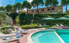 The estate includes 10 hectares of land, with 3 hectares of vineyard, 300 olive trees, and well-maintained woods and lawns surrounding the farmhouse. it also features a private swimming pool and a 64 sqm annex currently used as a tool shed, which can be converted into a guesthouse.