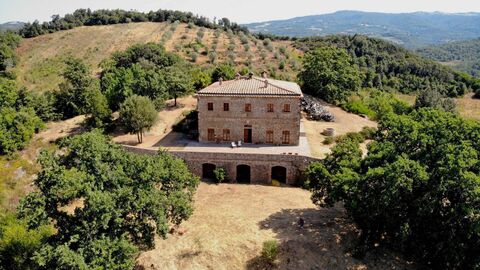 Surrounded by an idyllic Tuscan landscape, the property sits on a panoramic hilltop, overlooking the Cornia Valley and offering full privacy.