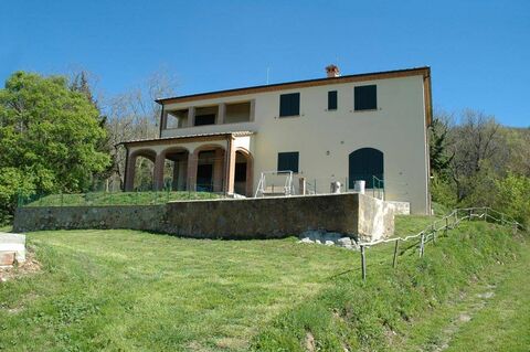 Nestled in the beautiful Tuscan countryside, near Massa Marittima, this charming property consists of a newly built main building spread over two levels, divided into three independent apartments. The complex, constructed with high-quality rustic materials, blends harmoniously with the hilly landscape of the Metalliferous Hills, located 600 meters above sea level and only 30 km from the sea of Follonica.