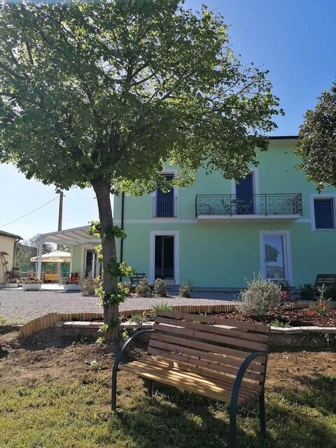 Nestled in the picturesque Tuscan countryside and surrounded by prestigious vineyards, we offer a splendid 265 sqm farmhouse, recently renovated and currently operating as a B&B. The building is spread over two levels: the ground floor is entirely dedicated to hospitality, featuring five bedrooms each with a private ensuite bathroom, a breakfast room, a relaxation veranda, and a technical room. On the first floor, accessed via an internal staircase, is the owners' apartment consisting of a large living room, an eat-in kitchen with a pantry and balcony, three bedrooms, and two bathrooms. The interiors blend traditional rural charm with the comfort of latest-generation systems.