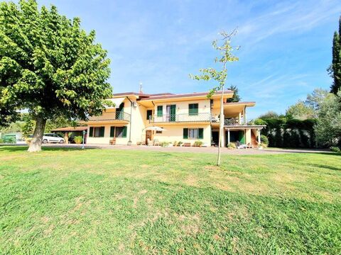 The villa is surrounded by a beautiful fenced garden with automated driveway gate and pedestrian access, as well as an adjacent plot of land of about 6,000 sqm. Outdoors, the property includes a car shelter, barbecue area and additional versatile spaces suitable for various uses. The extensive green area guarantees privacy, tranquillity and the chance to enjoy outdoor spaces throughout the year, making this residence an ideal retreat immersed in nature yet only minutes from town.
