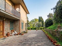 Completely renovated in 2013, the farmhouse consists of two independent apartments, measuring 90 sqm and 80 sqm, each with its own entrance. The first apartment features a large living/dining room, two spacious double bedrooms, and two bathrooms, while the second apartment has a similar layout, with a living/dining room, two double bedrooms, and a bathroom. A magnificent terrace surrounds the second apartment, providing an excellent outdoor living space.