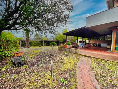 The garden surrounding the villa is well-maintained and includes two small wooden sheds, perfect for storing garden tools or outdoor furniture during the winter months. Additionally, the outdoor veranda is equipped with a masonry kitchen, a barbecue, a wood-burning oven, and a sink, all complemented by an outdoor shower, making the space particularly functional during the summer season.