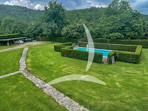 The estate is surrounded by 100 hectares of land, including a beautiful wooded area. At the edge of the forest lies a panoramic saltwater pool, inspired by ancient Roman baths and entirely made of stone, with water flowing directly from the source.